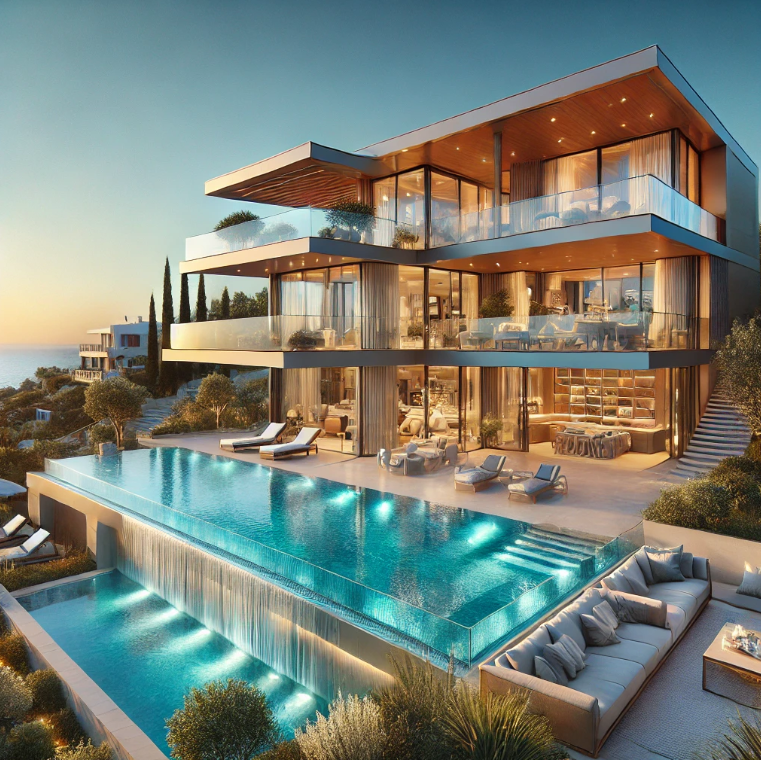 • Villas de luxe : Des propriétés spacieuses avec des aménagements haut de gamme, souvent dotées de jardins paysagers, de piscines privées et offrant une vue panoramique sur la mer.